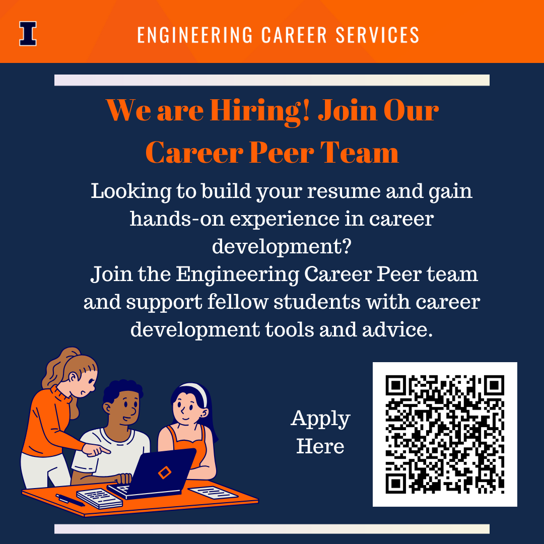 Engineering Career Peers support fellow students in developing career readiness skills. Apply by January 26, 2026! Read the full job description here.